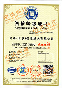 尚語翻譯是AAA級質(zhì)量服務(wù)信譽(yù)單位